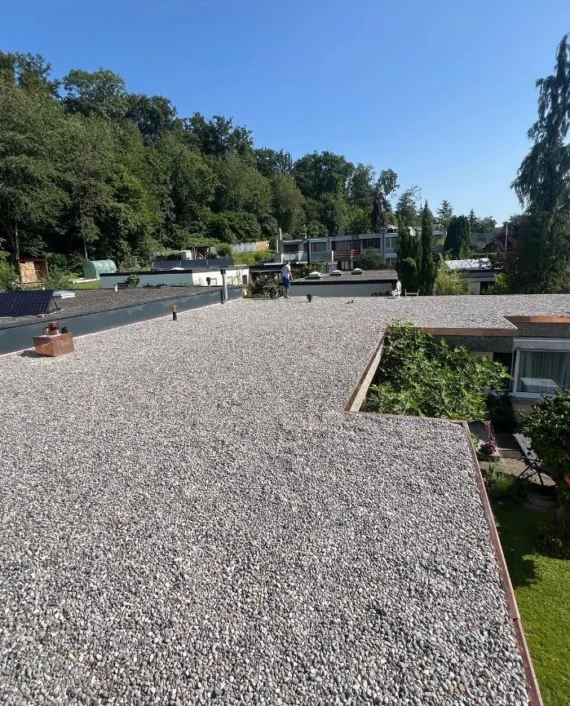 Flachdachabdichtung mit Bitumenbahnen für dauerhaften Schutz vor Wasser. Individuelle Spenglerarbeiten für Fassadenelemente und Dachränder zur Erhöhung der Haltbarkeit. Umfassende Wartungsarbeiten zur Verlängerung der Lebensdauer des Daches.